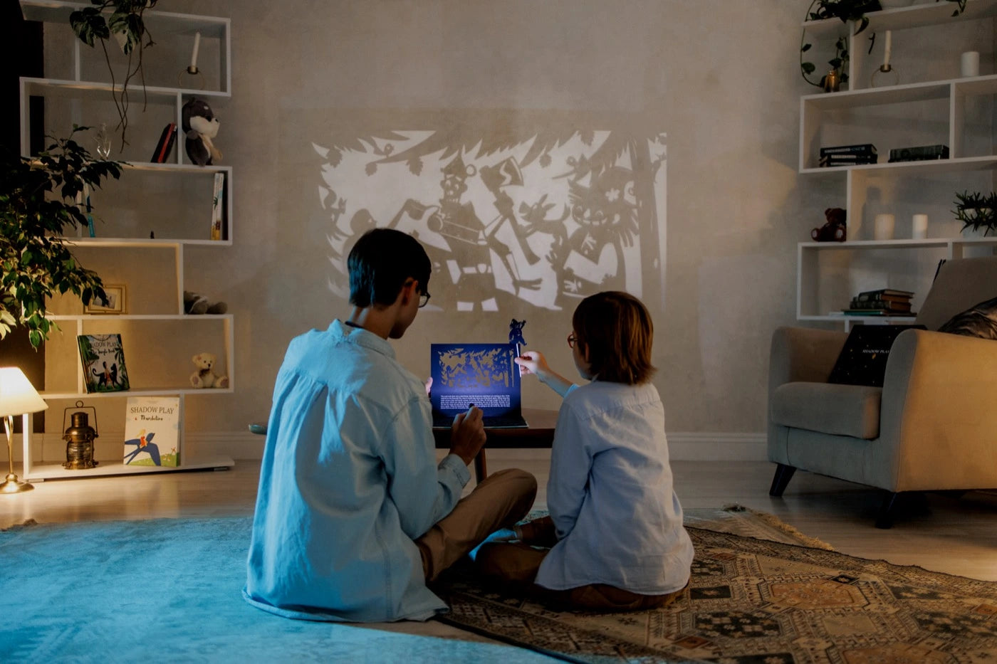 This is a basic set from SHAPLABOO™ that allows you to put on an exciting theatrical performance at home. The set includes an innovative book with carved illustrations and a set of shadow puppets. You only need a